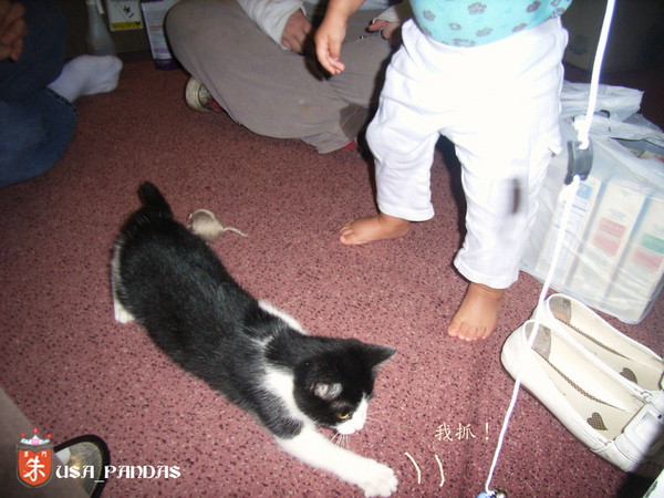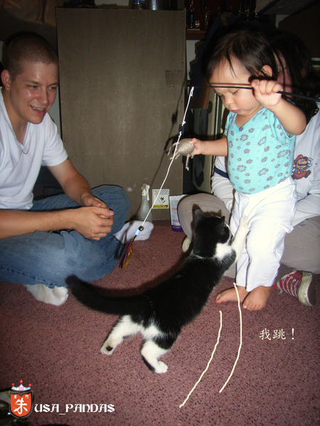 還有,又雖然一開始,住樓上的威森家的爸爸Drew並不太高興(他不太喜歡貓);又因為他們一直還沒帶貓咪去剪指甲,因而搞的我們住在樓下的歪門家各個傷痕累累,但因為貓咪小姐可人的貓性(? 有時還是很野)