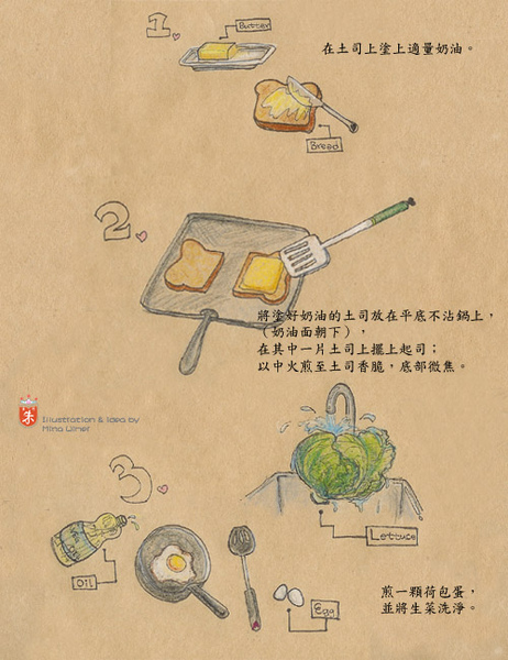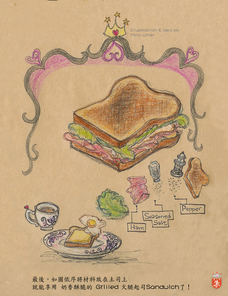<div style="text-align: center;"><img src="http://pic.pimg.tw/usapandas/49de0d2254bb7.jpg" alt="" width="470" height="124" /><br /><br /><img src="http://pic.pimg.tw/usapandas/49de0d22831c4.jpg" alt="" width="470" height="611" /><br /><br /></div> <p style="text-align: center;"> </p> <p style="text-align: center;"><!-- more --></p> <p style="text-align: center;"> </p> <div style="text-align: center;"><img src="http://pic.pimg.tw/usapandas/49de0d2319e44.jpg" alt="" width="470" height="609" /><br /><br /><span style="color: #666699;">食材:<br />土司、奶油、起司(我們家用的是Velveeta)、雞蛋、生菜、火腿(chopped ham)<br /></span><br /><br />這是之前有一天,<br />在家用剩下的食材做了三明治來當<strong>午餐</strong>,<br />(因為一般午餐都只有mina和Abby在家,所以有時很懶)<br />沒想到mina和朱爸就此就深深迷戀上了<br />mina's special sandwich!<img src="/_common/FCKeditor/editor/images/smiley/msn/teeth_smile.gif" alt="" /><br /><br />15分鐘不到,一頓簡單又營養的午餐就搞定!!<br />真的是非常的簡單又好吃!</div>